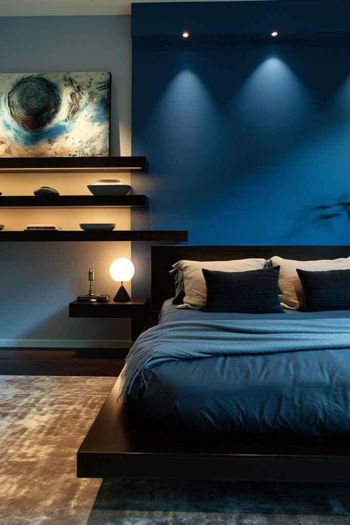 El azul es ideal para cuartos gracias a su capacidad para inducir calma y serenidad. Los tonos claros son perfectos para crear un ambiente relajante, mientras que los azules más oscuros aportan profundidad y formalidad.
